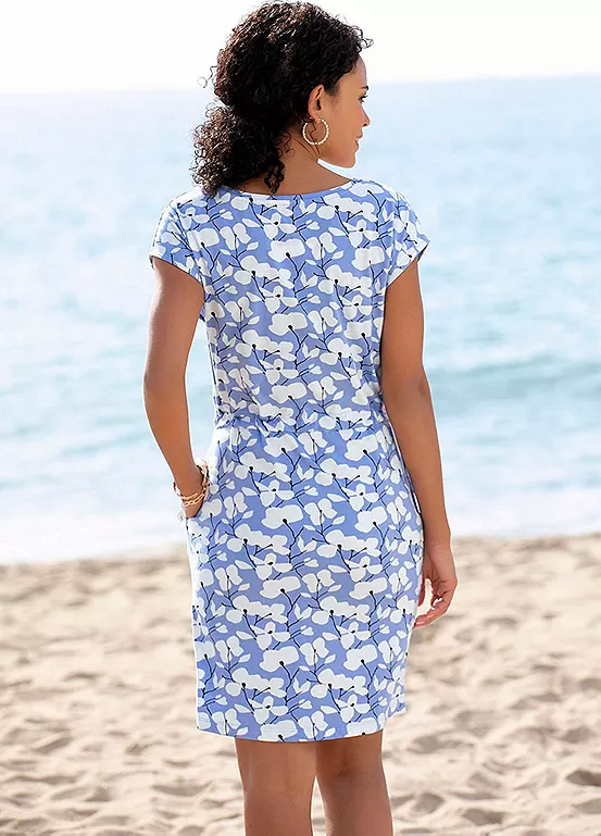 A trendy summer dress by Beachtime in an all-over floral print with short overcut sleeves and a round neckline. Made from soft jersey material, it features a drawstring at the waist and side pockets.
