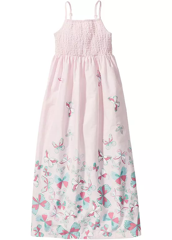 A pure cotton summer maxi with adjustable cami straps and stretch ruching at the front and back to ensure a good fit.