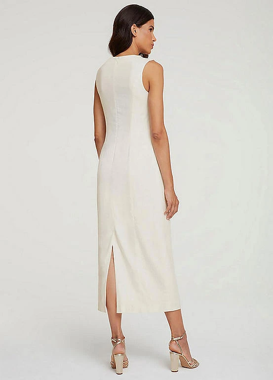 This shift-style dress is sleeveless and beautifully made for your figure. Made from high-quality textured fabric with linen for perfect comfort, it features a concealed zip fastening and a back vent.