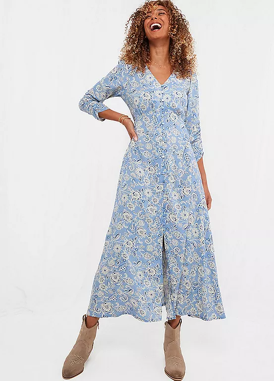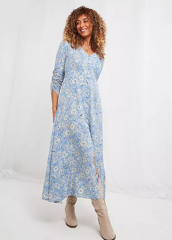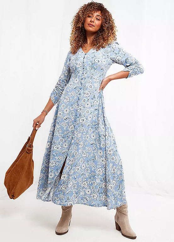 Perfect for picnics and walks in the park, this midaxi dress will elevate your everyday style. Available in blue or red, we added pretty shirring and ruched sleeves to get that feminine, vintage look. Finished with a flattering V-neck and under bust shaping, it sits beautifully too, helping you feel even more fabulous.