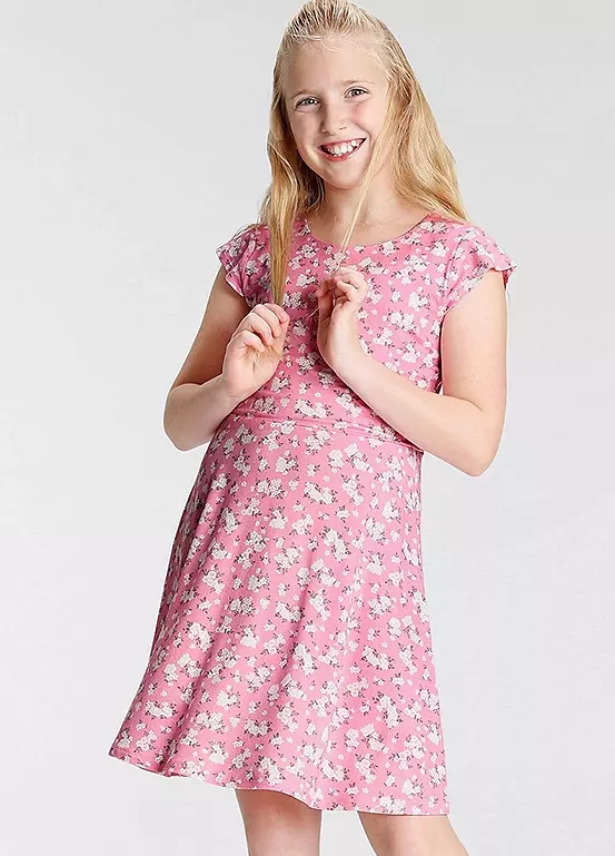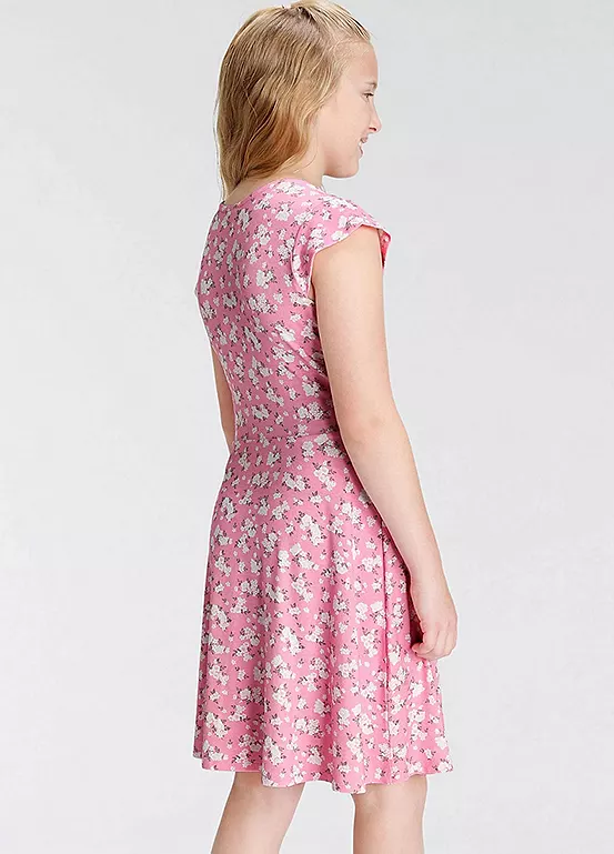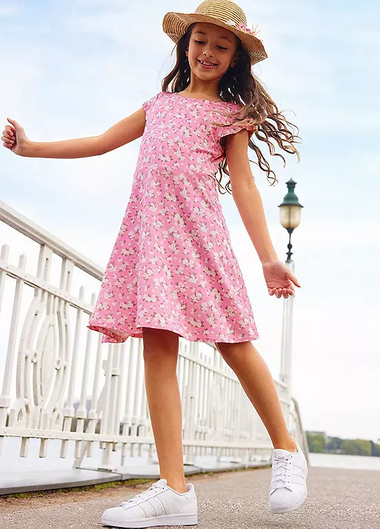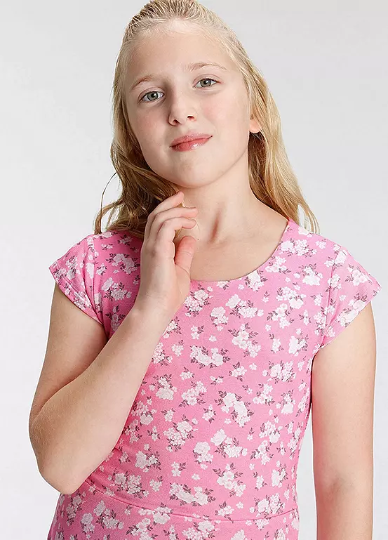 A stylish floral print dress with short sleeves that flares out at the bottom and finishes above the knee. Thanks to the elastic and soft material, this dress feels comfortable on the skin.