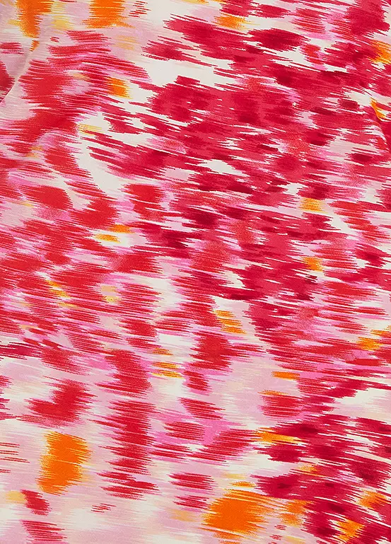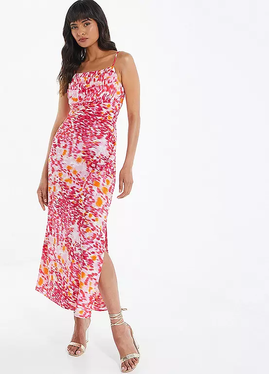 This stylish midi dress features beautiful summer print with knot bust and straps.