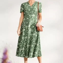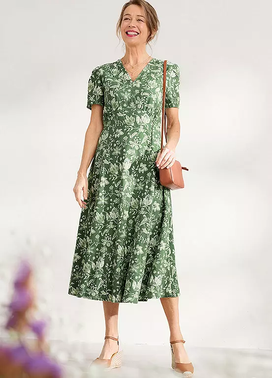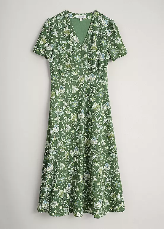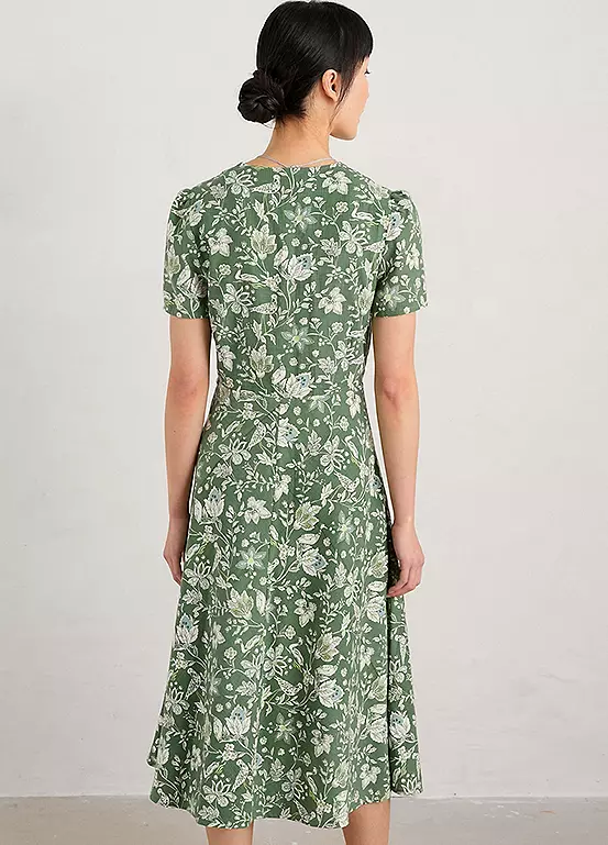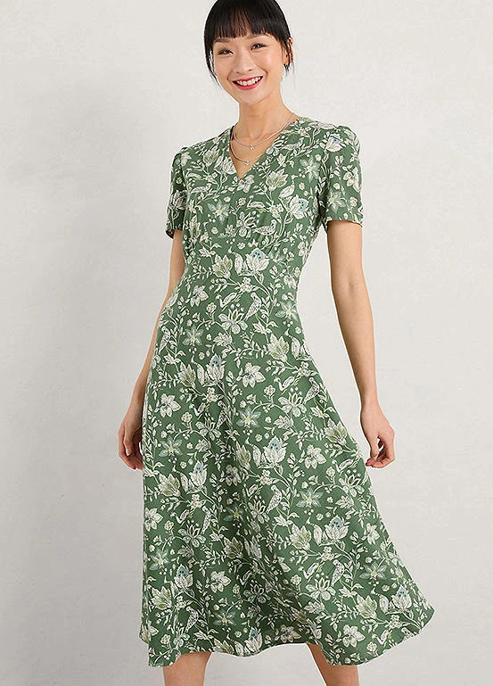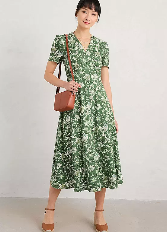 Fully-lined midi dress made from a soft and floaty cotton viscose blend in a handcrafted Seasalt print.