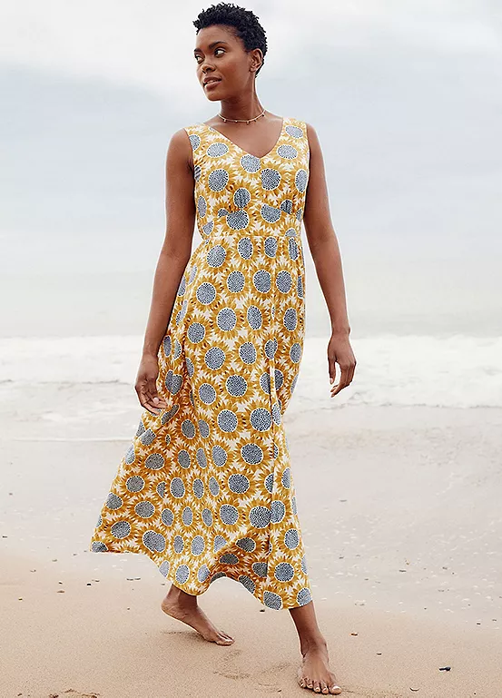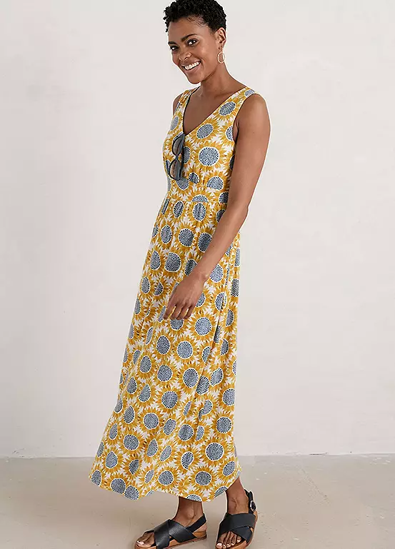 Sleeveless empire line dress in organic cotton slub jersey with a unique Seasalt print.